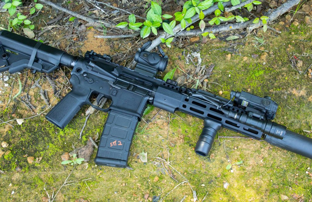 The first order of business was to ensure a properly gassed rifle for suppressed and unsuppressed functionality. After testing multiple solutions, we determined a MK2 Recoil system from BCM with a Sprinco Green with an appropriately sized gas port was the best option. This combination provides a buttery-smooth cycle and low recoil impulse for rapid, consistent follow-up shoots.